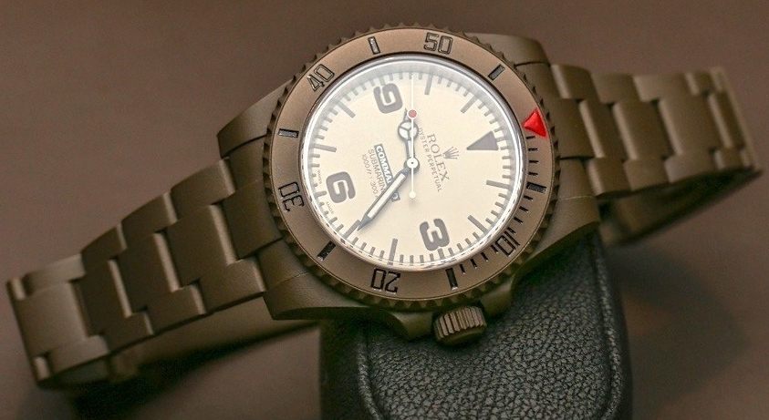 UPDATE: The pictured watch is actually a pre-production prototype which is not detailed like the final versions will. The image of the watch above with the black background is of the final model. So… one of the newest timepiece collections from Bamford Watch Department are the “Commando” watches (debuted here) which take stock Rolex Submariner or Milgauss watches and modify them with special case coatings (that will come in a few colors) as well as custom dials produced by Bamford. The Bamford Watch Department Commando watches even come with very cool packaging to complete the military cheap replica Rolex watches theme that George Bamford put so much time and effort into.